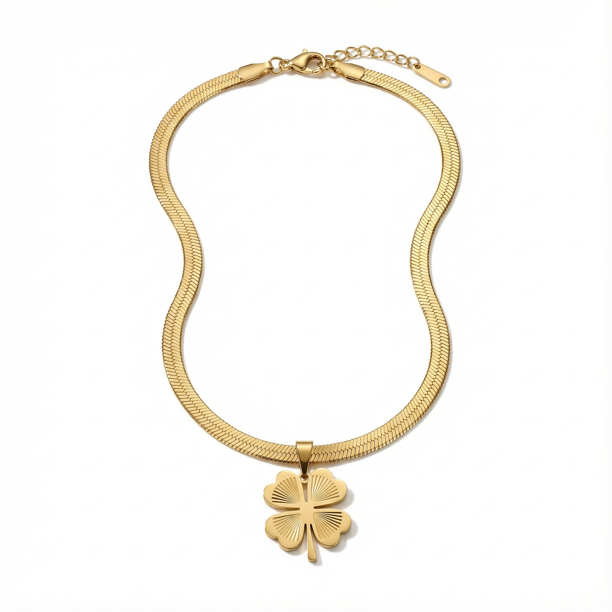 Elegant gold-tone necklace with a four-leaf clover pendant